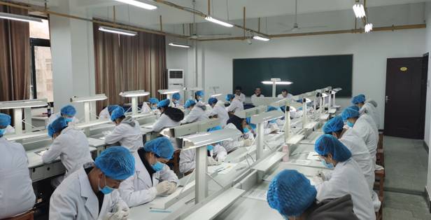 此次技能比武分为初赛和决赛两个阶段。参加初赛的有140名选手,最终30名选手脱颖而出进入决赛。此次竞赛项目为“3倍大石膏上颌磨牙邻合面Ⅱ类洞制备”。比赛过程中,选手们沉着应战、动作准确、操作规范,展现了良好的专业技能,现场评委参照全国卫生职业院校口腔技能大赛及“日进杯”全国口腔技能大赛的竞赛评分标准对参赛作品进行评分,逐一点评和提出指导意见。