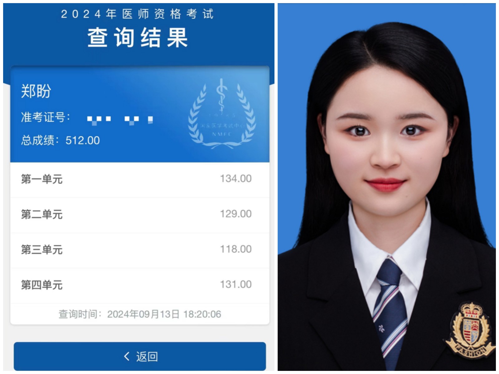 2024年全国执业医师资格考试成绩出炉,我院2018级学生郑盼取得总分512分,为全省最高分,在全国59万考生中位列前茅!