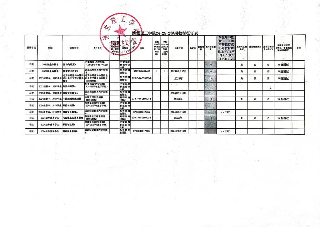 beat365英国官方网站2024-2025学年第二学期教材选用情况公示