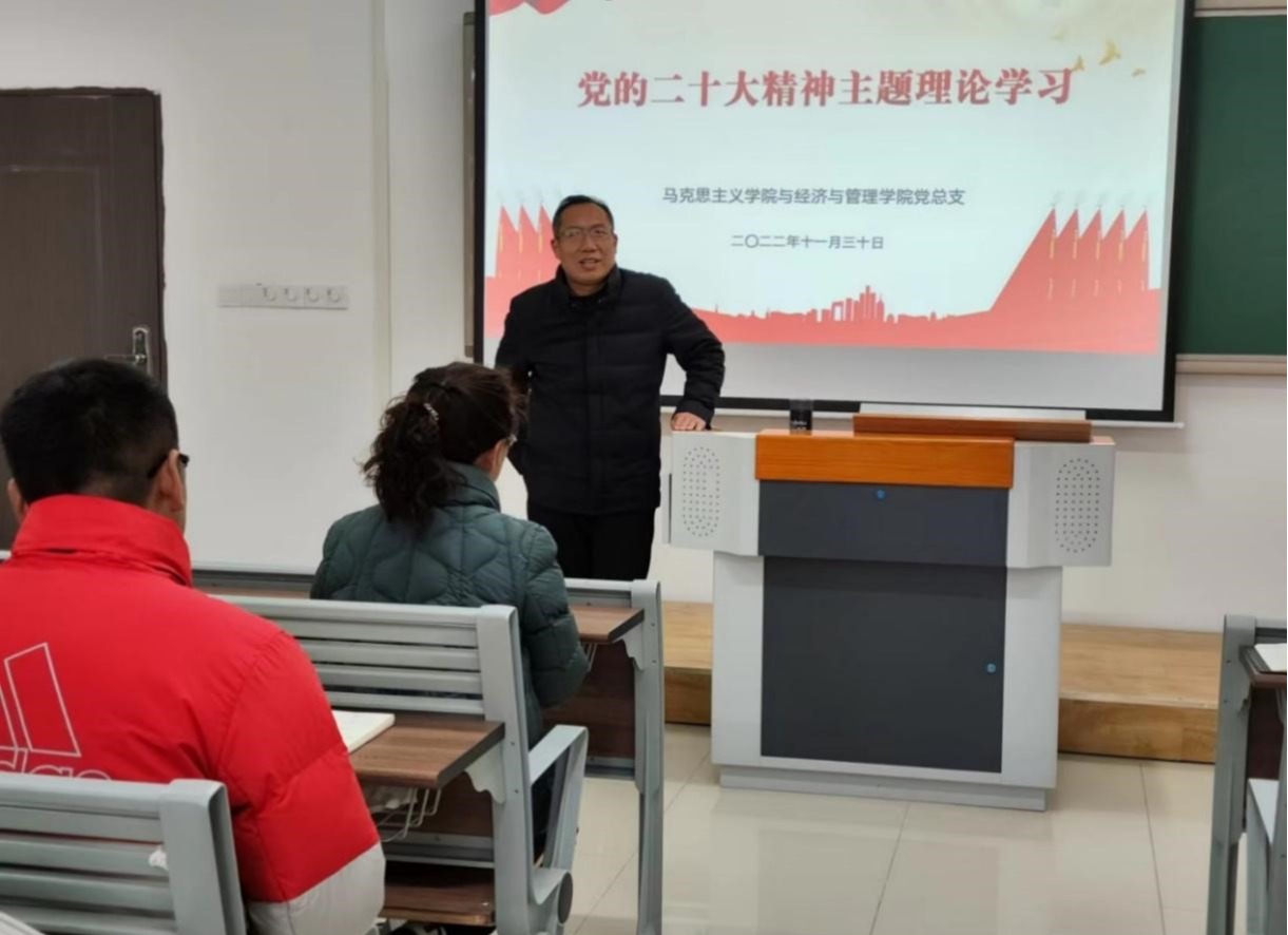 为深入学习宣传贯彻党的二十大精神,切实把思想和行动统一到党的二十大精神上来,引导全体党员干部、教师积极响应时代呼唤,紧密团结在以习近平同志为核心的党中央周围,深刻感悟思想伟力,领悟大会精神。11月30日下午,beat365英国官方网站与经济管理学院党总支组织开展了关于党的二十大精神主题学习活动,由党总支书记吴玲以“做新时代绚丽华章的谱写者”为主题,在二教421为全体教师上了一堂生动且深入的专题党课。