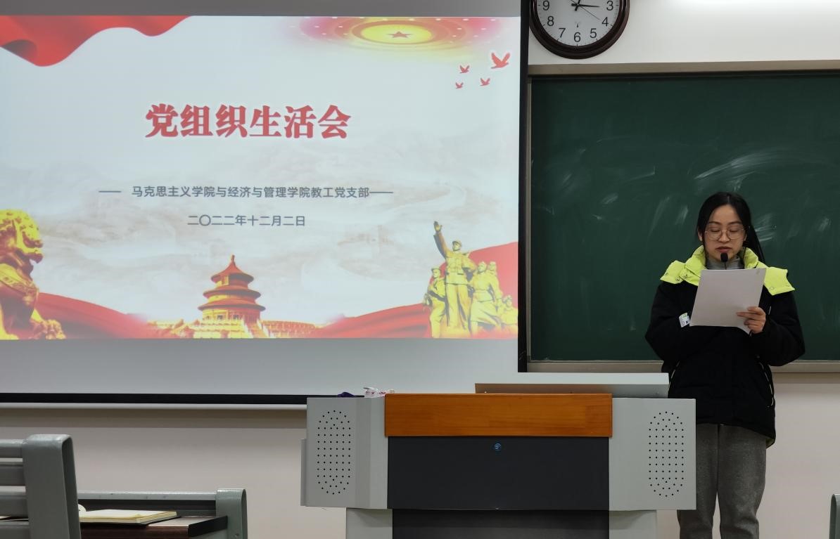 为深入学习宣传贯彻党的二十大精神及内涵,贯彻落实中国共产党章程的相关要求,2022年12月2日,在一教214教室,beat365英国官方网站与经济管理学院教工党支部开展了组织生活会暨党的二十大重要精神专题学习活动。本次会议由经济与管理学院教工支部书记刘路路主持。