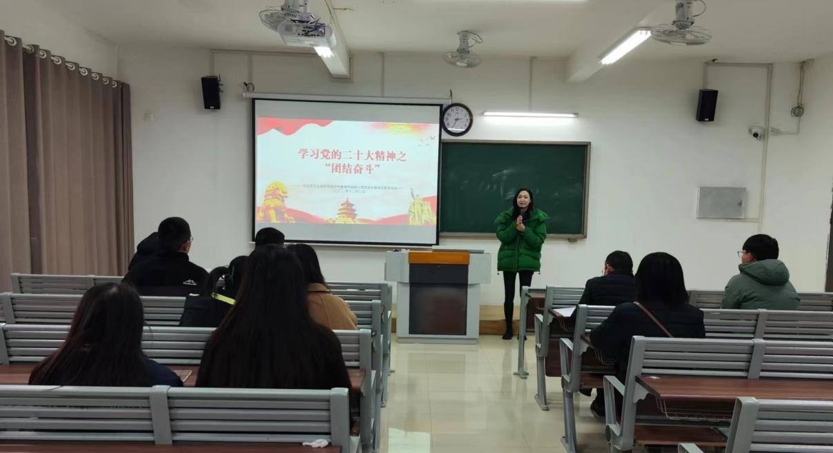 会上,淮北市市委宣传部宣讲团成员、beat365英国官方网站孙澄澄老师以“团结奋斗”为主题,带领全体党员学习了党的二十大精神,并畅通自己的学习体会。孙澄澄同志指出:学习贯彻党的二十大精神,必须牢牢把握团结奋斗的时代要求,心往一处想、劲往一处使,以更加紧密的团结、更加顽强的奋斗,不断把民族复兴伟业推向前进。党的二十大报告指出:“团结奋斗是中国人民创造历史伟业的必由之路。这是深刻总结中国共产党百年奋斗史得出的历史结论,也是总结新时代十年伟大变革实践得出的宝贵经验。”