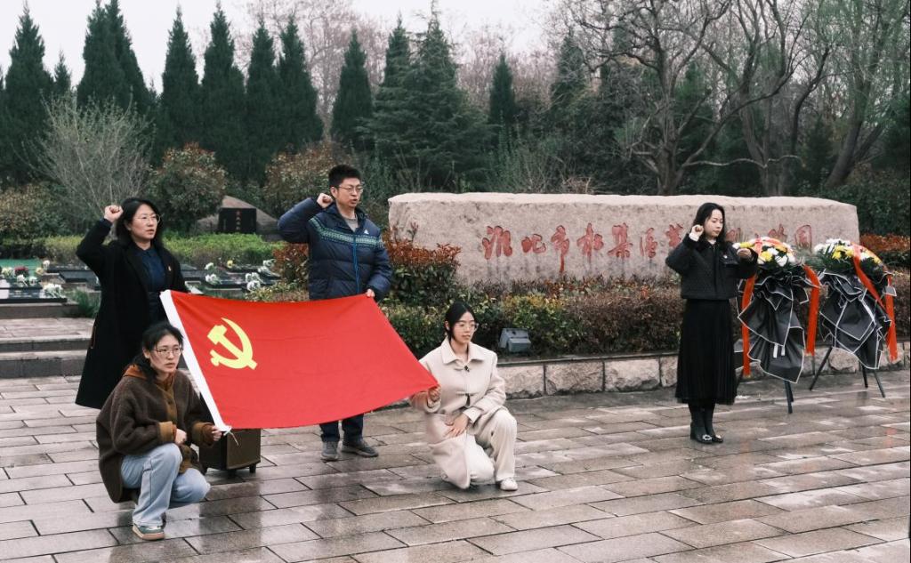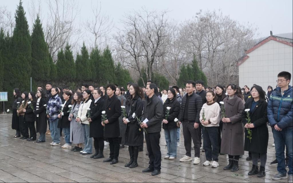 加强爱国主义教育,弘扬英烈精神,传承红色基因,坚定理想信念,丰富党支部活动形式,在清明节即将到来之际,beat365英国官方网站党支部联合教育学院两支部于3月27日下午赴淮北市杜集区革命烈士陵园共同组织开展了“清明祭英烈”主题党日活动,三个支部部分师生党员代表及部分学生团员代表共110人参加了此次活动。