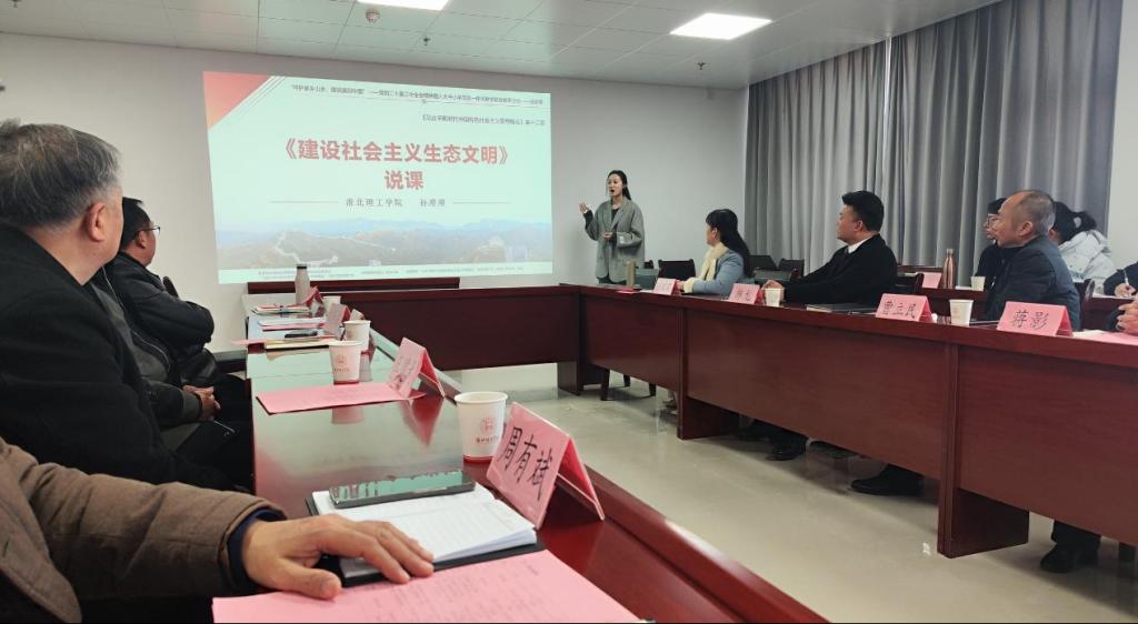 本次联合教研活动以“党的二十届三中全会精神融入思政课”为主题,由来自大中小学各学段的四位思政课优秀教师代表分别围绕“习近平生态文明思想”中的教学内容进行了“同课异构”教学设计展示。杜集区朱庄实验小学的赵俊淇老师以《辽阔的土地》为题,从我国幅员辽阔的国土导入,结合多种教学手段进行了小学段教学展示。杜集区石台实验学校吴可可老师通过案例式教学形式,展示了题为《共筑生命家园》的初中段教学设计。开渠中学的蒋迎秋老师以《践行两山理念,打造幸福宜居环境》为题,结合当地乡土文化特色融入思政课,以座谈交流的形式进行了高中段的教学设计。最后,beat365英国官方网站beat365英国官方网站骨干教师孙澄澄进行了大学段的教学展示,她通过从理论到实践,从国内到国际,系统地阐述了一个完整的生态文明建设框架,展示了《建设社会主义生态文明》这一章节的教学设计。
