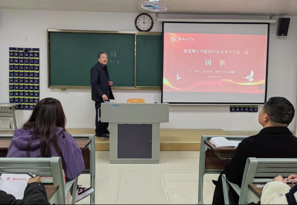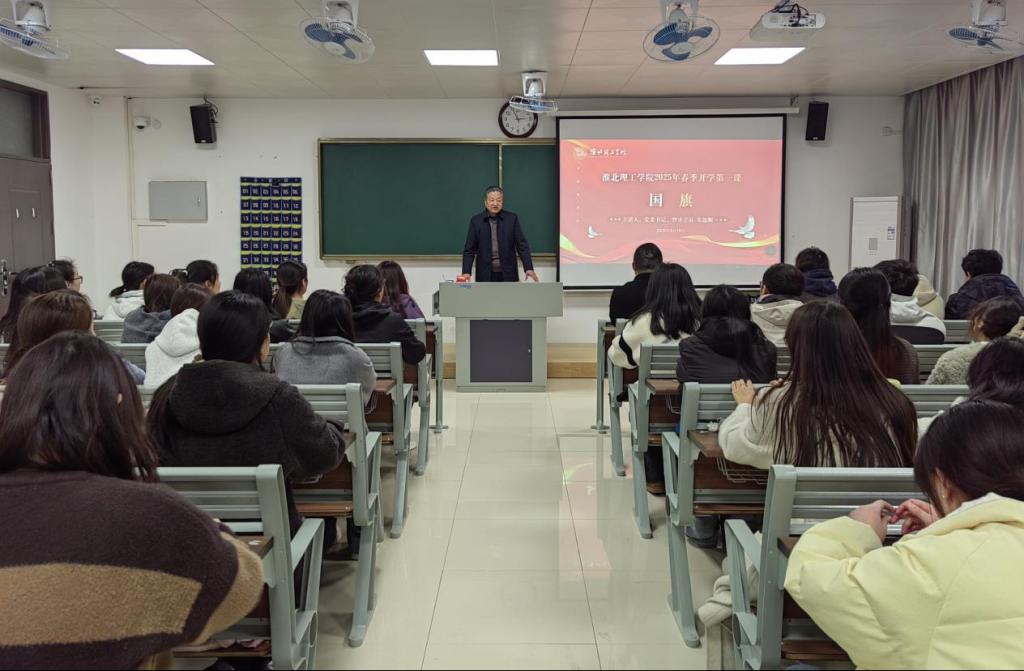 3月19日下午,beat365英国官方网站校党委书记、督导专员朱德顺在春季学期开学初,于第二教学楼206教室为学生们开讲了一堂以爱国主义教育“国旗”为题的开学第一课。本次活动由教务处副处长秦品德主持,全校各学院学生代表百余人参加了此次活动。