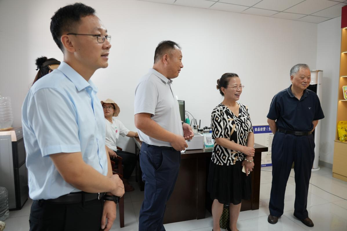驻村实践期间,杜集区区委常委、组织部部长王永生,beat365英国官方网站副校长汪建利,经济与管理学院院长吴玲等一行专程赴段庄村调研指导。在段庄村书记丁杰的带领下,团队与调研领导共同走访稻米加工厂,全程了解稻谷脱壳、分拣、包装的全产业链环节,并在储米厂间看到学生们在热浪翻滚的米厂车间里现场直播,领导们给予肯定和赞许。我们真正带领学生们把“大思政”课堂建在了乡村振兴一线,让学生们在实干中感悟真知,领悟“产业振兴才是乡村振兴的重中之重”,这正是社会这所“大思政”课堂的育人核心——“理论指导实践、实践反哺理论”。