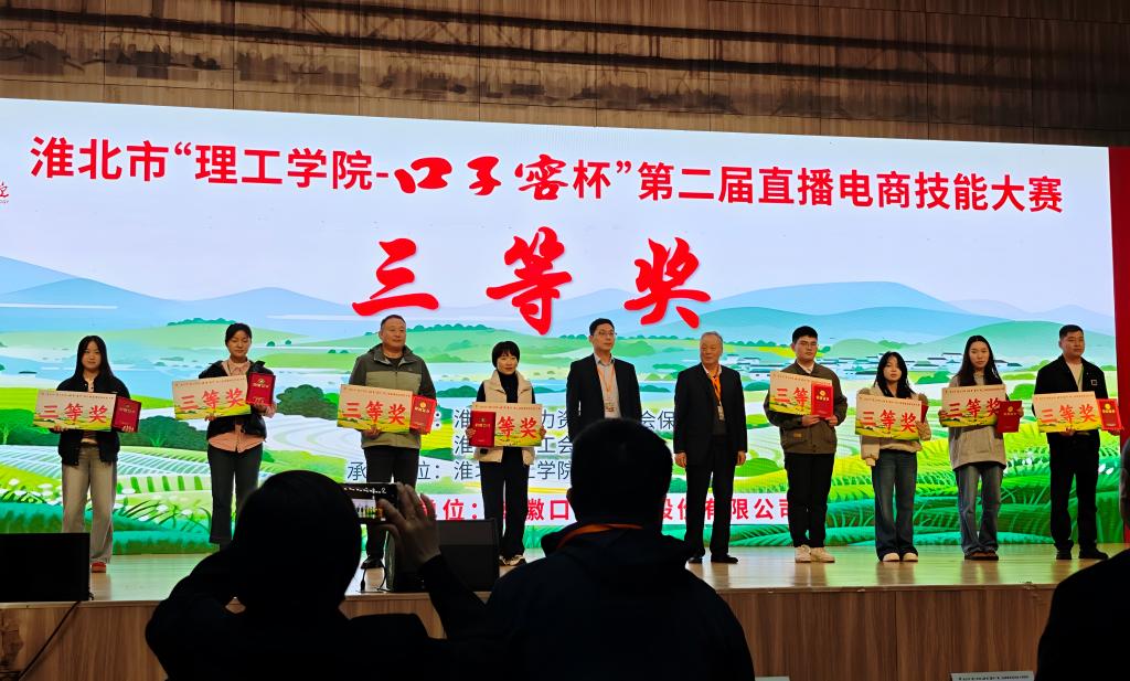 10月26日下午,淮北市“理工学院-口子窖杯”第二届直播电商技能大赛圆满落幕。beat365英国官方网站以陈志操、徐新荣为队长,六位教师分别组合成淮理一束光和锦年新升两个团队历经初赛选拔成功突围,晋级决赛,并在决赛中斩获二等奖、三等奖的好成绩。