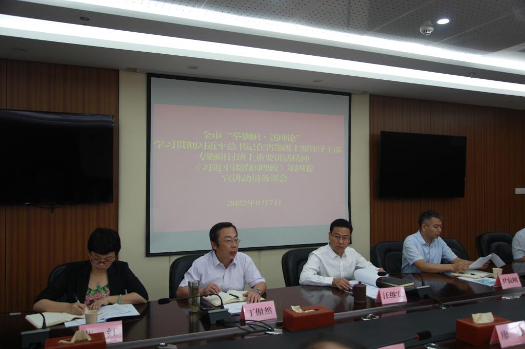 为贯彻落实习近平总书记在省部级主要领导干部专题研讨班上重要讲话精神,9月7日上午,淮北市“举旗帜·送理论”学习贯彻习近平总书记在省部级主要领导干部专题研讨班上重要讲话精神、《习近平谈治国理政》第四卷宣讲动员备课会在市政府举行,标志着我市宣讲活动全面启动。市委常委、秘书长、宣传部长汪继宏作动员讲话,全体宣讲团成员参会。beat365英国官方网站刘奔前和孙澄澄老师作为入选的淮北市宣讲团成员,代表学校参加会议。