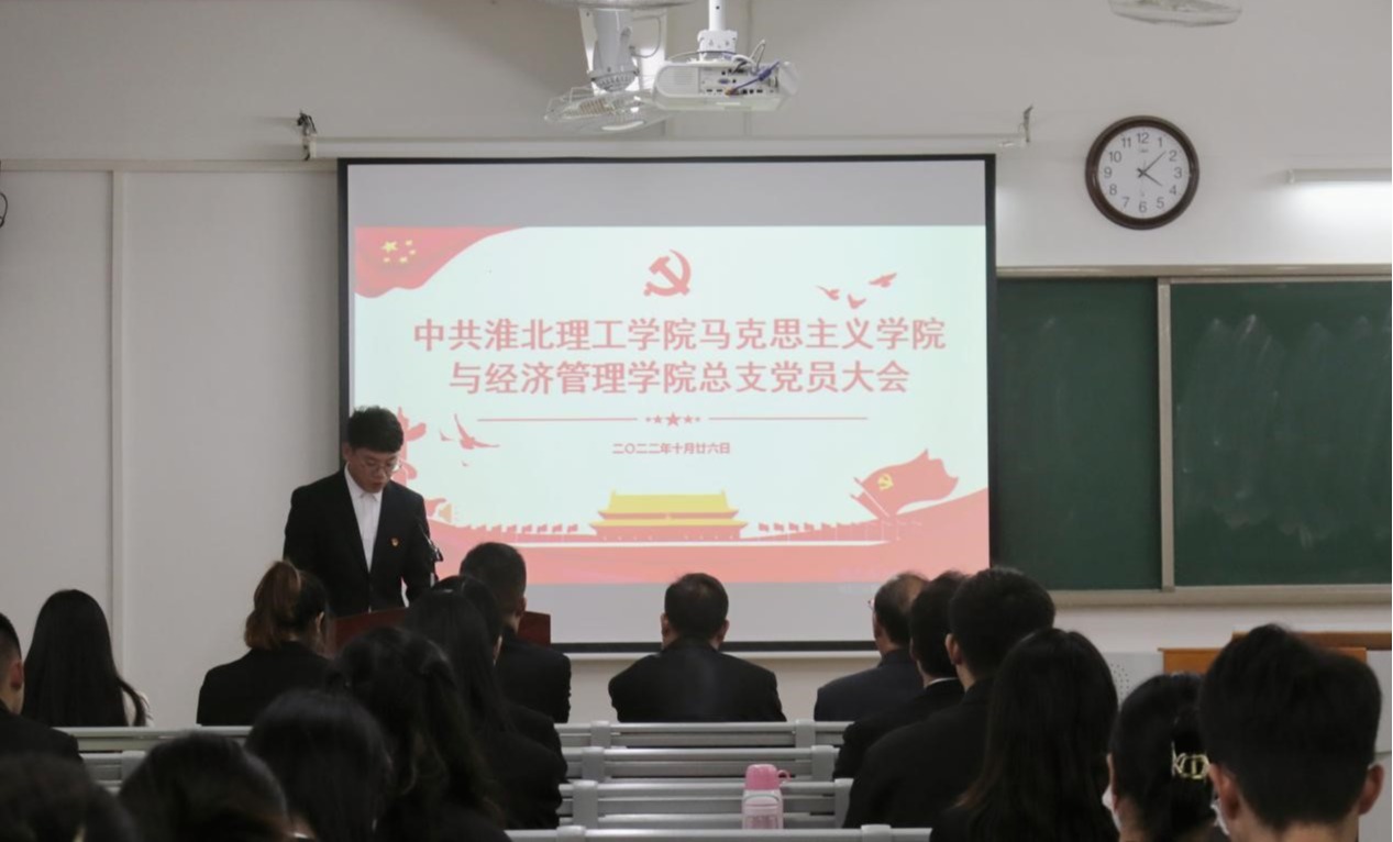 大会在庄严雄壮的《国歌》中拉开帷幕,校党委委员、党建办公室主任付金沐同志受党委书记朱德顺同志的委托参加大会,并发表重要讲话。付主任首先向beat365英国官方网站和经济管理与建筑工程学院全体党员和师生员工表示热烈祝贺。付主任强调,这次党员大会是学院全体共产党员和师生员工政治生活中的一件大事,恰逢中国共产党第二十大胜利闭幕之际,在全校师生员工以高昂的精神风貌和饱满的热情,学习贯彻党的二十大精神之际,召开这次会议,意义特别深远,希望全体党员要深刻认识开好这次大会的重要意义。付金沐对总支工作提出三点建议:一是要认真学习宣传贯彻党的二十大精神,加强党的政治思想建设,坚定社会主义办学方向,学习好、宣传好、贯彻好党的二十大精神,是当前和今后一个时期的首要政治任务。二是要持续加强基层党组织的组织建设,发挥好基层党组织政治核心作用。三是要坚持立德树人,把培养担当民族复兴大任的时代新人作为基层党组织的根本任务。最后付金沐主任强调,相信在校党委行政的关心支持下,在新一届党总支委员会的带领下,beat365英国官方网站和经济管理与建筑工程学院学院在新的征途上一定能创造更加辉煌的未来。
