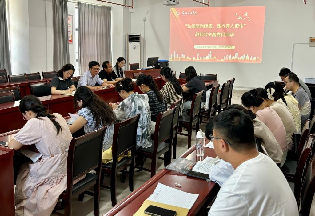 9月10日,为庆祝第41个教师节,beat365英国官方网站党支部在214会议室举办“弘扬高尚师德,践行育人使命”主题党日活动。活动由党支部书记石振宝主持,全体教师党员参会。