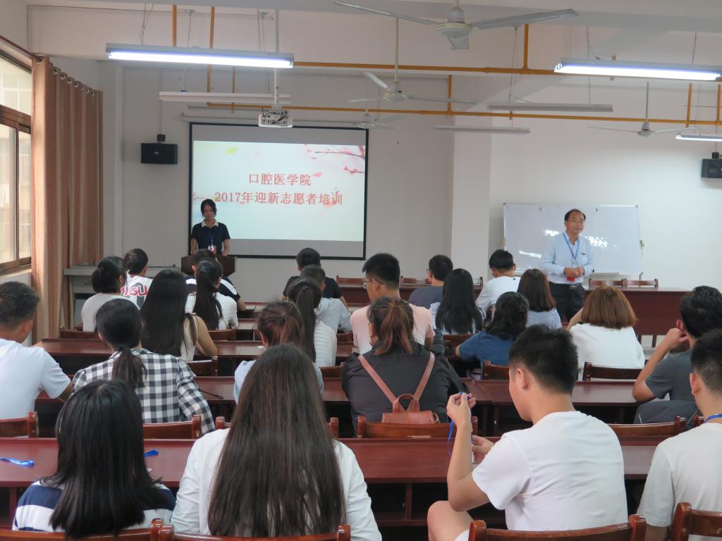 9月5日下午,我院在医护实验楼召开2017年迎新志愿者培训大会,副院长高想清、辅导员宁曦、路小岚及团总支、学生会志愿者到场参加会议,会后接受了孝感电视台到现场进行采访。