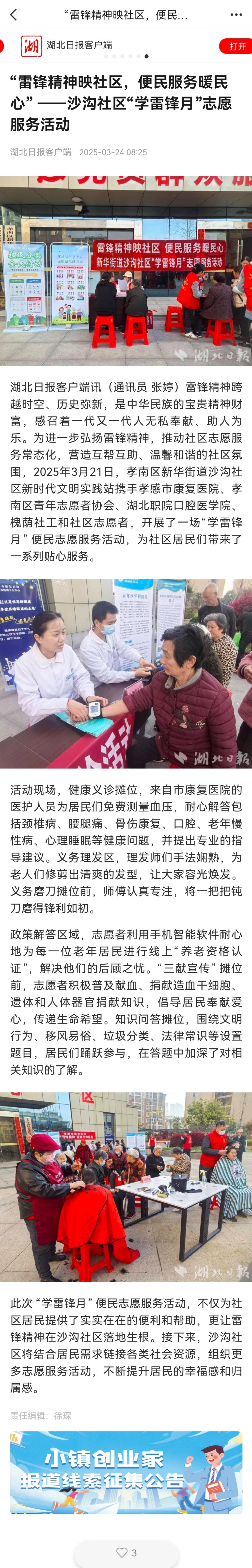 【湖北日报】“雷锋精神映社区,便民服务暖民心” ——沙沟社区“学雷锋月”志愿服务活动