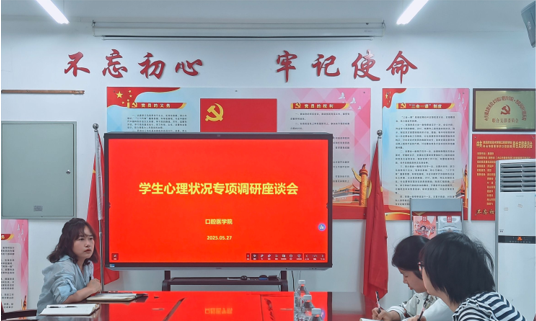 5月27日下午,一场聚焦大学生心理状况的专项调研座谈会在开云kaiyun官网会议室顺利举行。学校党委学生工作部心理中心主任胡敏、心理中心调研组成员、开云kaiyun官网学工副院长张玮、开云kaiyun官网心理专干苏莹及全体辅导员共同参与,旨在深入了解大学生心理状况,探讨有效的心理辅导策略。