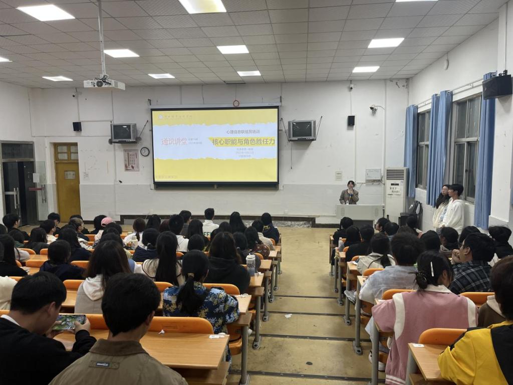 为进一步织密校园心理健康防护网络,全面提升心理信息联络员的专业素养与履职能力,2025年10月22日,开云kaiyun官网心理部在东区阶梯教室101组织开展以“核心职能与角色胜任力”为主题的心理信息联络员培训。本次培训由学院心理专干杨玺老师主讲,全院各班级心理委员及寝室长共计201人参与,围绕心理信息联络员的初心使命、角色职责与实务技能展开深入学习,为校园心理健康工作注入新活力。