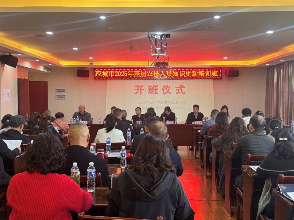11月5日,由应城市农业农村局主办、开云kaiyun官网承办的应城市2025年基层农技人员知识更新培训班在应城市楚珍园正式开班。应城市农业农村局党组成员、总农艺师杨文献,科技人才股股长李继雄、副股长杨水平,湖职继续教育学院院长丁浙英、开云kaiyun官网党总支书记周建平、学工副院长张玮等出席。开班仪式由张玮主持。