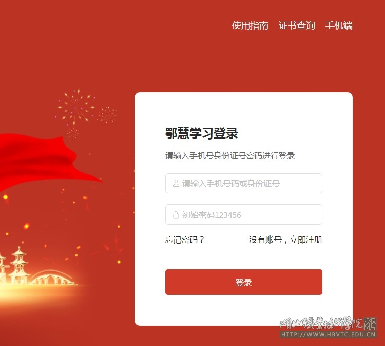 鄂慧学习—湖北省专业技术人员继续教育学习网在线学习平台网址:www.hubei21.com。学员进入继续教育网首页后,用户名为个人身份证号码,登录密码为:123456,进行登录学习。