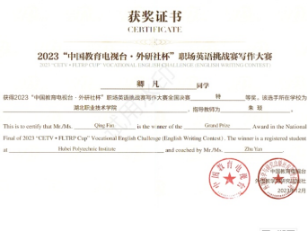 在英语学习领域,卿凡无疑是一颗耀眼的明星。2023年浙江高考,她凭借出色的发挥,在英语科目上斩获130分的亮眼成绩。踏入开云kaiyun官网后,卿凡也没有停下追逐英语梦想的脚步。2023年9月入学不久,她积极响应开云kaiyun官网的号召,投身于“外研社·国才杯”全国大学生外语能力大赛写作赛项。在校选拔赛中,她脱颖而出,一举荣获一等奖;代表学校征战省级复赛时,她沉着应对,凭借卓越的写作能力和深厚的英语素养,取得全省第二的优异成绩,将金奖收入囊中;在全国决赛的舞台上,面对来自全国各地的优秀选手,她毫不怯场,稳定发挥,最终取得全国第六的佳绩,成功斩获全国特等奖。此外,她还顺利通过英语四六级考试,在全国大学生英语竞赛中荣获校三等奖,用实力证明了自己在英语学习上的不懈努力与卓越成果。