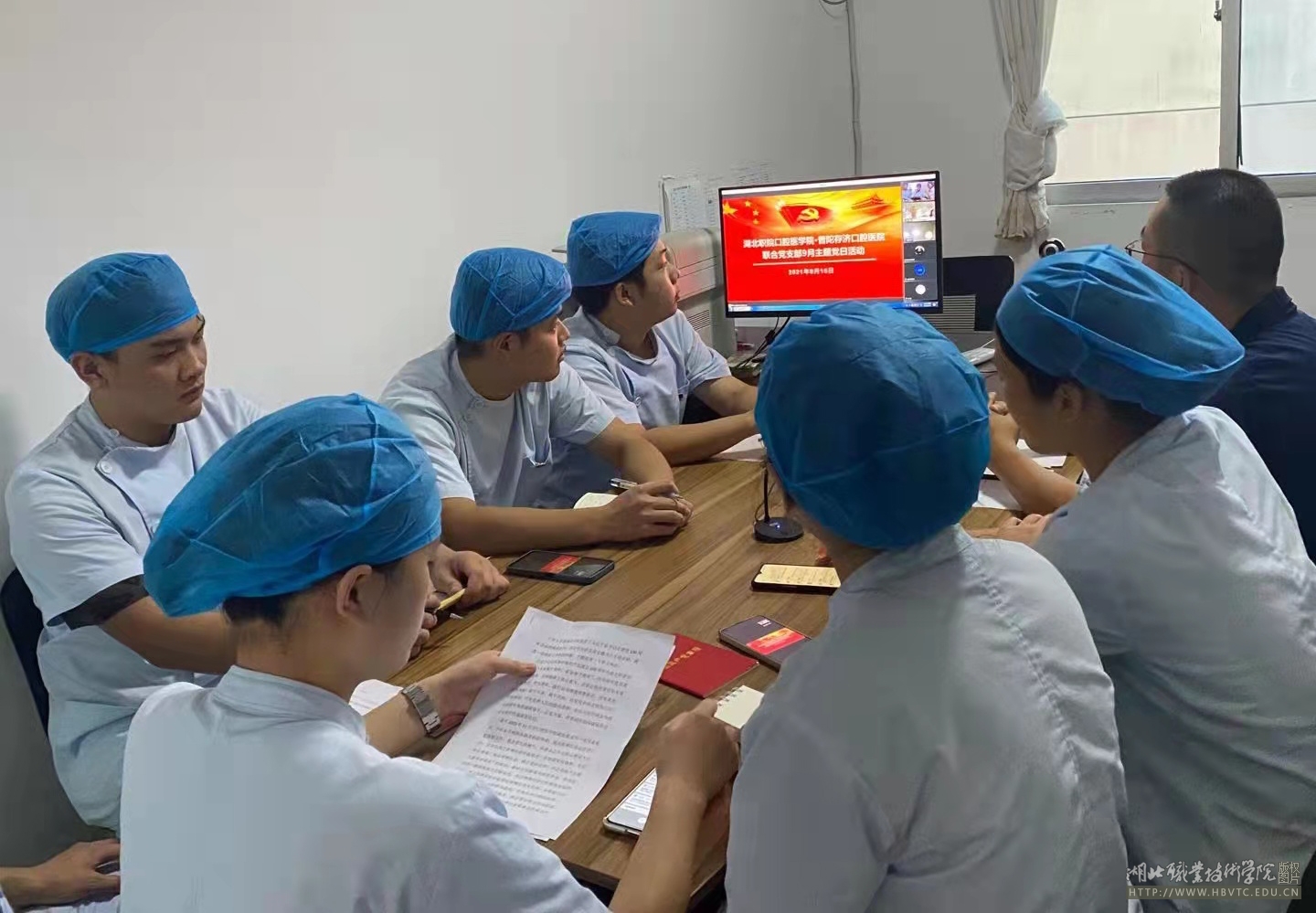9月15日,湖北职院开云kaiyun官网·浙江舟山存济口腔院联合党支部通过腾讯会议,举行学习贯彻习总书记建党百年讲话专题支部党日活动,开云kaiyun官网、浙江舟山存济口腔医院教师、医生党员分别在线下会场参加会议,分布在全国各地的2019级实习生预备党员通过手机线上参与,会议由开云kaiyun官网学工党支部书记吴建桥同志主持。