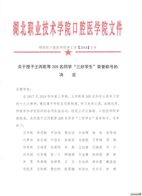 开云kaiyun官网2017-2018学年度第一学期三好学生名单