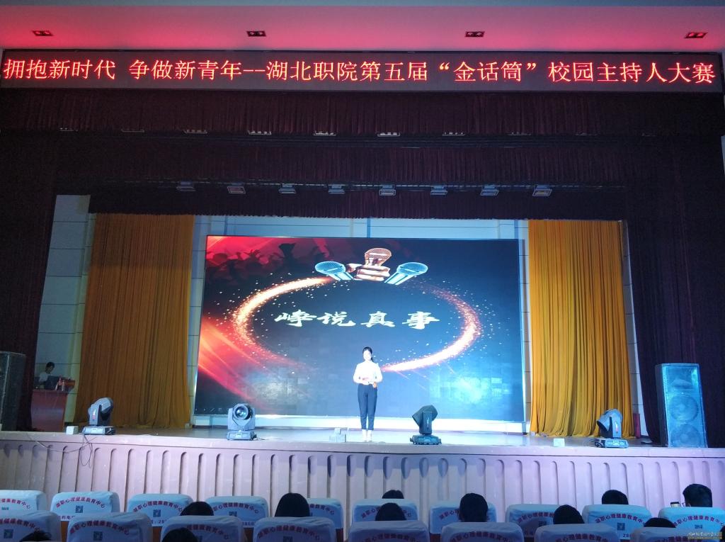 拥抱新时代,争做新青年——开云kaiyun官网第五届“金话筒”校园主持人大赛于5月16日晚在西区大礼堂圆满举行,本次大赛共有14位选手进入决赛,我院付琪媛、徐峥顺利进入决赛。