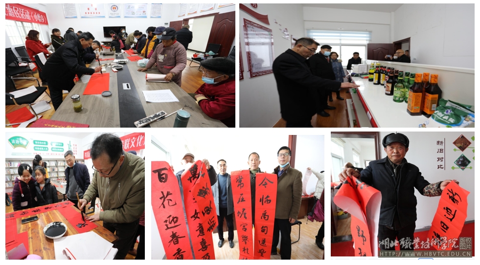 “虎岁刚饮祝捷酒,兔年又放报春花。”这是建筑工程学院梁遗鹏老师在万冲村文化活动中心为乡亲们题写的一副对联。他一边了解村民家里的变化和现状,一边根据村民的家庭状况写出“贴切”的对联。志愿者李启航说,丰盛的精神文化大餐,让乡村的年味更浓了!