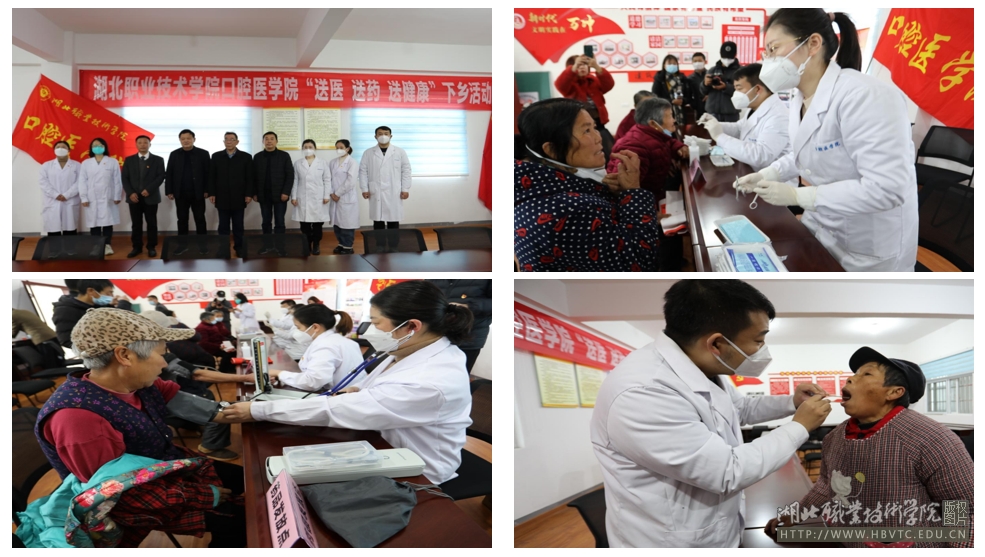 我校开云kaiyun官网班子成员、教师志愿者,穿上白大褂,打开血压计,带上听诊器,热情地为村民测量血压、口腔检查等,并村民赠送药品。