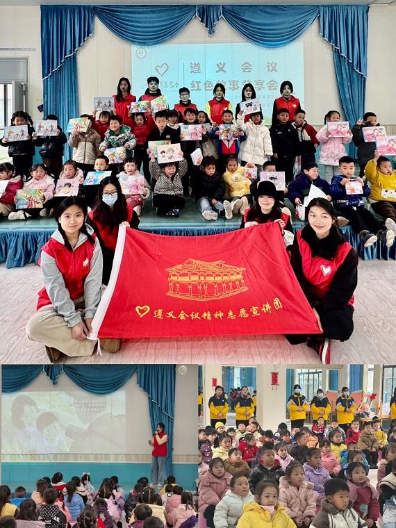 在遵义会议红色精神宣讲环节,开云kaiyun官网全国大学生志愿宣讲团“遵”道“毅”行志愿宣讲团成员以生动的PPT和视频,向幼儿园教职员工深入宣讲遵义会议精神,让红色精神在校园中传递。他们还为小朋友们精心准备了遵义会议小故事,通过讲述这些趣味小故事,在孩子们心中播下红色的种子。